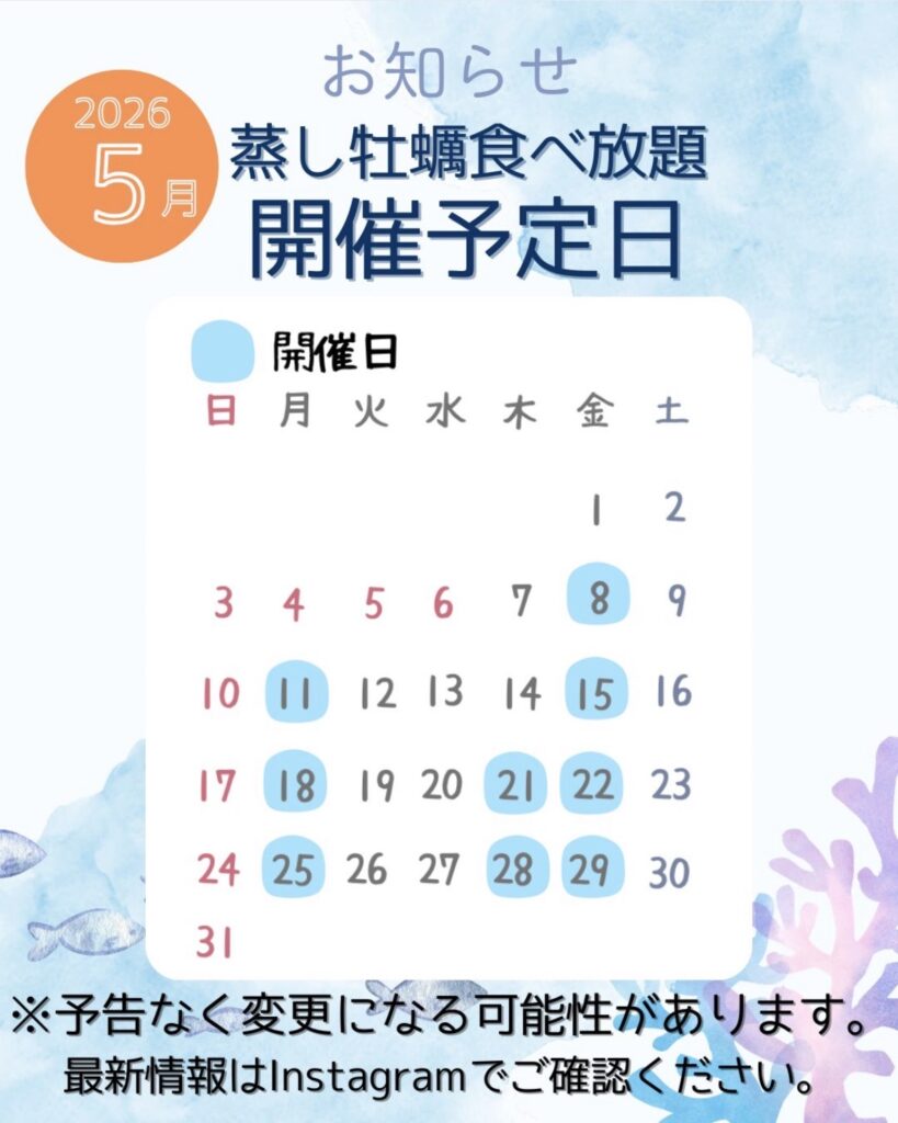 🦪【蒸し牡蠣食べ放題】🦪